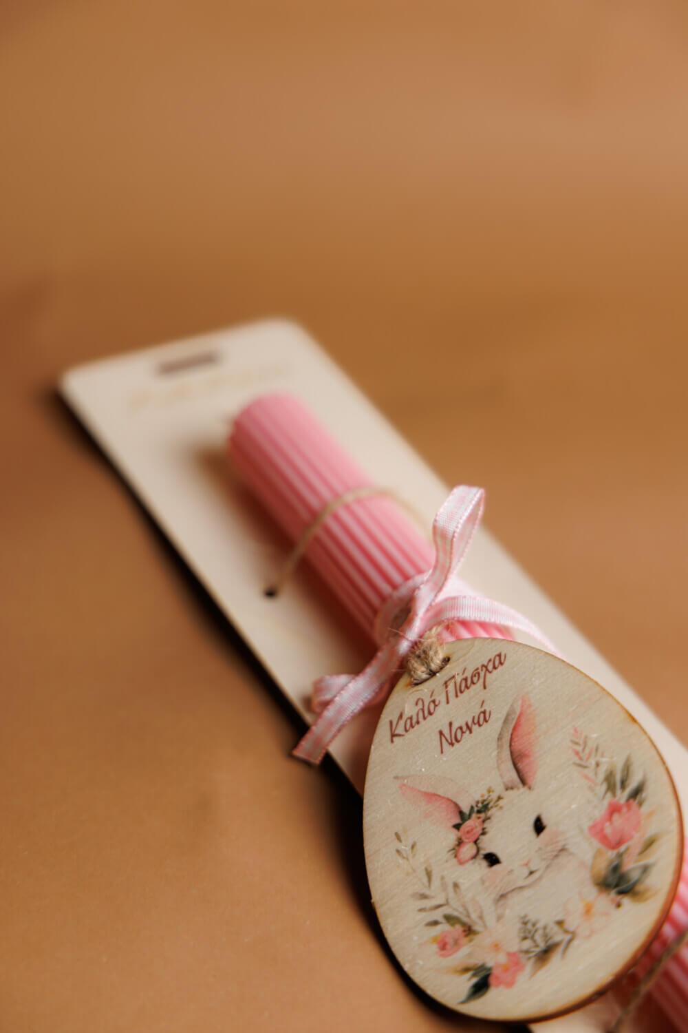 Το κερί στολίζεται με ξύλινο διακοσμητικό στοιχείο που αναγράφει «Hello Baby Girl / Boy», κάνοντάς το ένα αναμνηστικό δώρο που θα μείνει αξέχαστο.